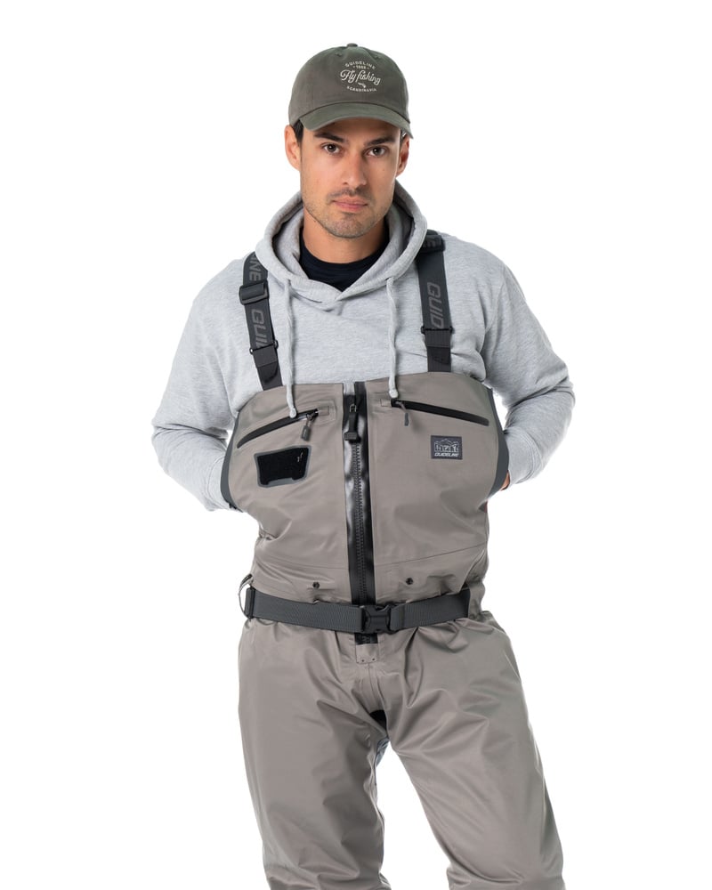 Scale™ PRO-membranteknologi Driva-vadarna är utrustade med vår Scale™ PRO membranteknologi och erbjuder utmärkt andningsförmåga och vattentäthet – med en vattenpelare på 20.000 mm och en andningsförmåga på 7.000 g/m²/24h. Vi använder bluesign®-godkända material och PFAS-fri DWR-behandling för att eliminera fluorkarboner som annars riskerar att läcka ut i vattnet. För extra komfort är vadarna försedda med den beprövade TiZip® MasterSeal-dragkedjan, vilket gör dem enkla att ta på och av. Vadarna har välsittande, justerbara och elastiskt hängslen, med ett nytt Duraflex®-fäste i ryggen. Midjebältet har en hård elasticitet som ger en tight bra passform, samt möjlighet att fästa tillbehör som vadarstavar eller tänger, samtidigt som det hålls på plats av de tre bältesöglorna i vadarna.