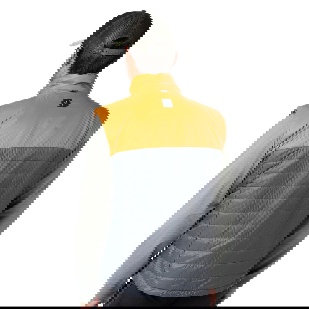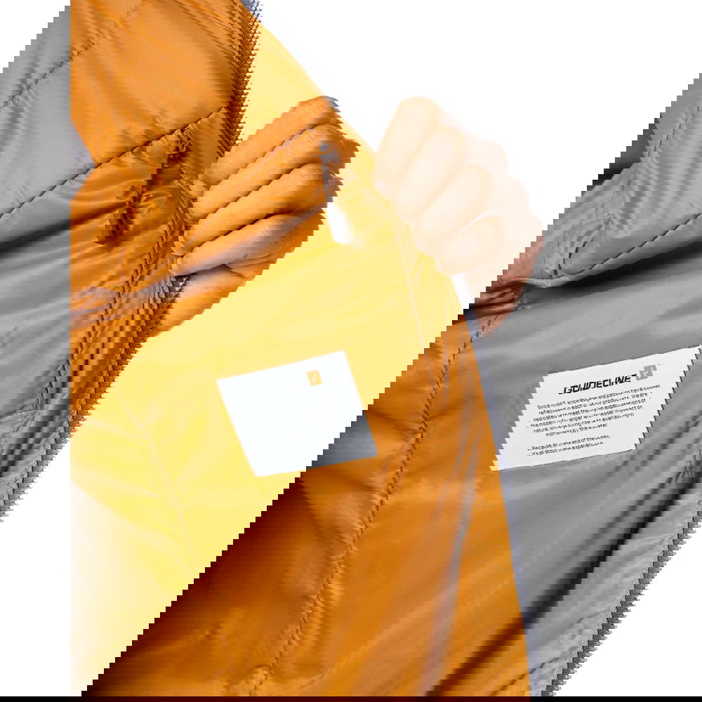 Återvunna material och smart konstruktion Yttertyget är tillverkat av 100 % återvunnen 20D nylon. Det är bluesign®-certifierat och innehåller inga avsiktligt tillsatta PFAS. Guideloft™- isoleringen består av 100 % återvunnen polyester, med 80 % raka fibrer och 20 % ihåliga och spiralformade fibrer för att ge spänst, mjukhet och hållbarhet. Konstruktionen är vattenresistent och hjälper dig att hålla dig torr i fuktiga förhållanden. YKK®-dragkedjan framtill är försedd med en vadderad vindslå som håller värmen i kalla förhållanden.