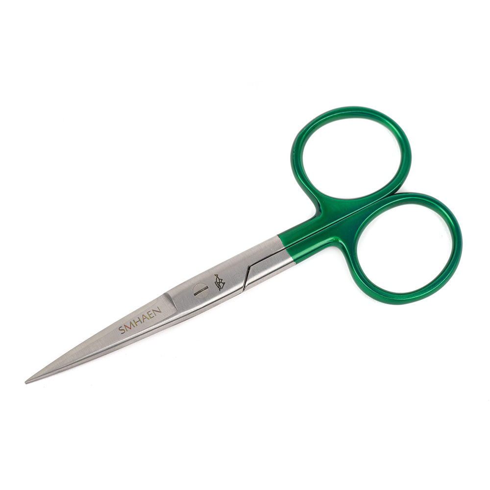 En bra sax är bland det viktigaste av allt för flugbindaren. Just denna modell är en kraftigare variant för grövre och längre material såsom bucktail, grova syntet- och flashfibrer. Bladen är gjorda av Tungstenkarbid vilket håller saxens skärpa mycket länge. Bladen är också mycket smått tandade vilket greppar mjuka och hala material bättre(tex. hårfibrer). De stora öglorna/öronen gör det enkelt att greppa saxen och den gröna färgen gör det enkelt att urskilja denna modell från andra.