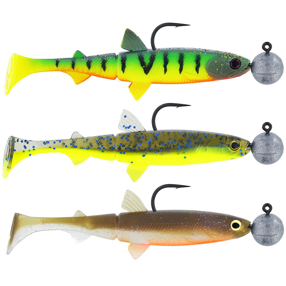 De kommer färdigriggade med jiggskalle i Zink, redo för vattnet och finns i sortiment för både klart och mörkt/grumligt vatten.