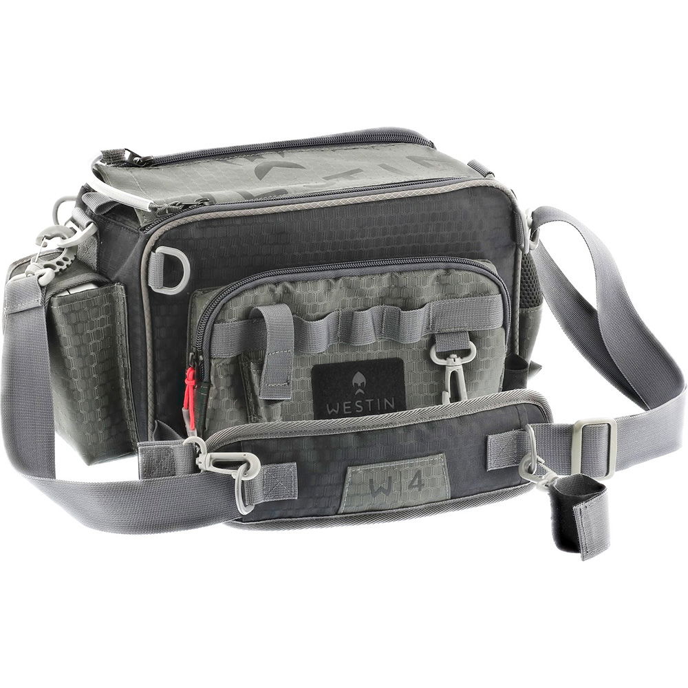 Två Westin-betesboxar ingår för förvaring av både mjuk- och hårdbeten, tillsammans med en box för småtillbehör (terminal tackle). Två fästpunkter gör det möjligt att bära ett spö och en håv på utsidan av väskan. Sidofickan är designad för en vattenflaska.