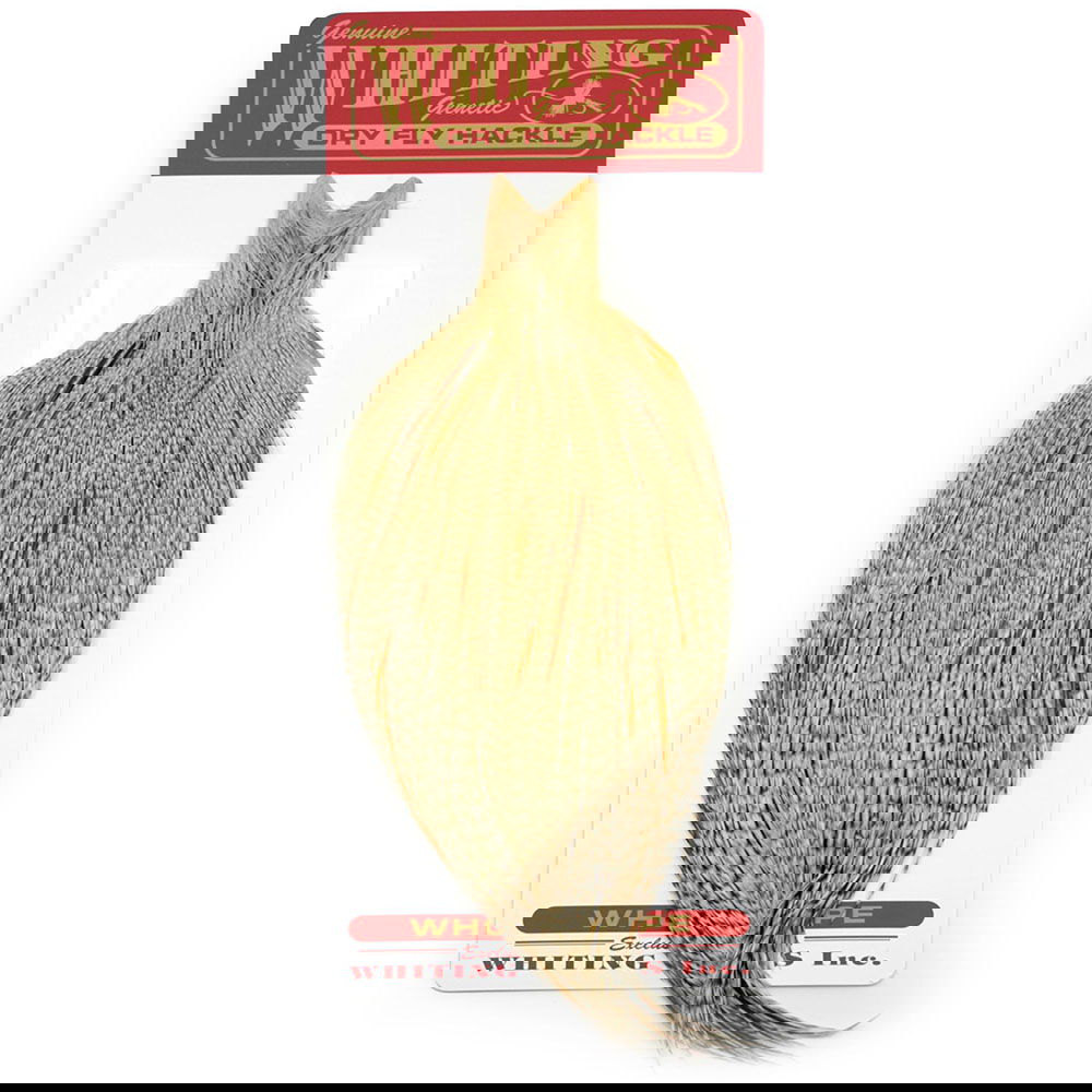 Whiting-nacke med graderingen "Commercial" har samma fina fjädrar och fibrer som alla vanliga torrflugenackar/saddles från Whiting. Det som gör dessa lägre i pris är att mängden av fjäder inte är fullt lika många samt några kosmetiska avvikelser som tex. någon bruten fjädertopp, ojämnt skinn. Detta ger helt enkelt en mycket fin nacke för en mycket rimlig peng!