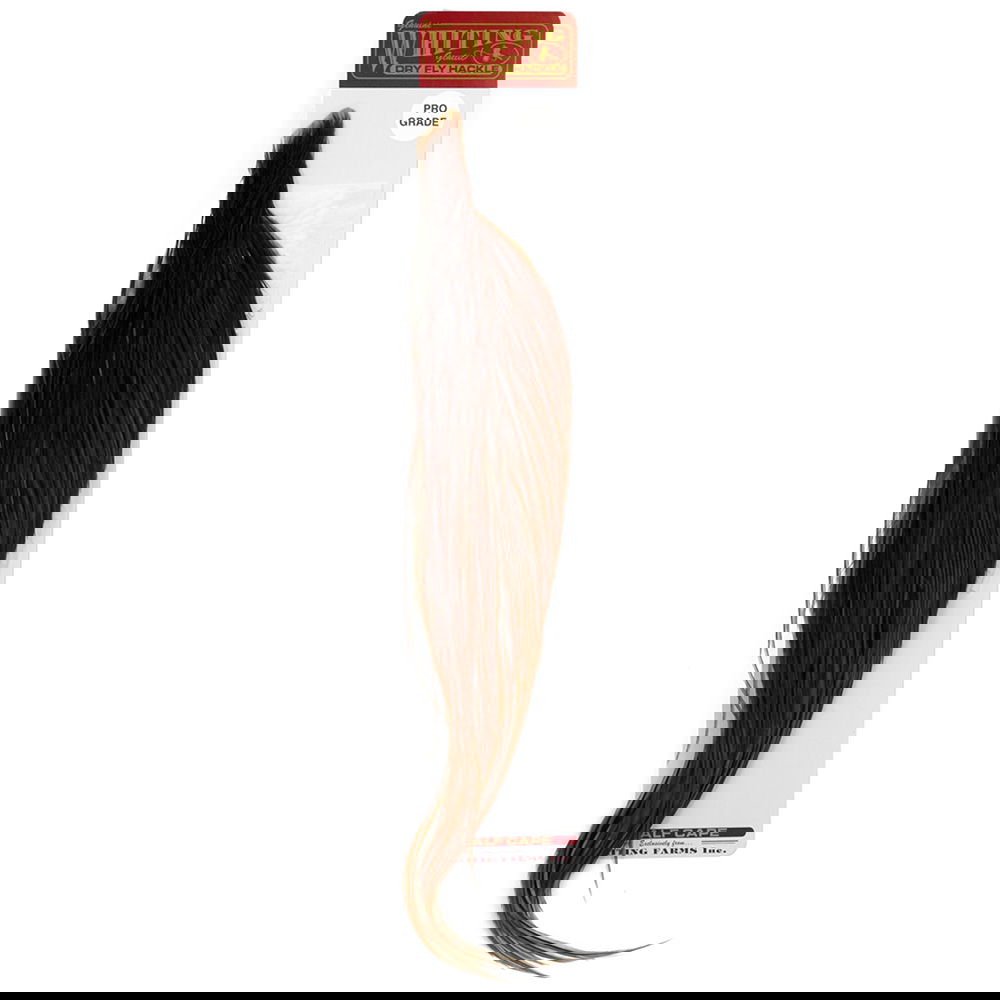 Denna Gradering, Pro Grade, är en variant av tuppnacke som passar främst till hackel för torrflugor då styvheten i fibrerna ger mycket bra bärande egenskaper och flytförmåga. Men de större fjädrarna gör sig också bra för annan flugbindning som tex. Hackel på Wolly Buggers eller vingar på Flatwing-Streamers.